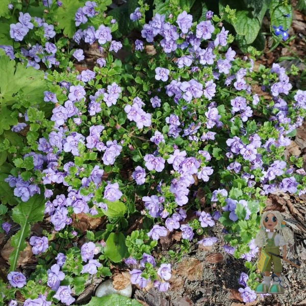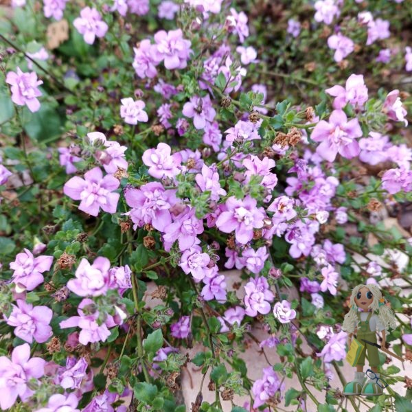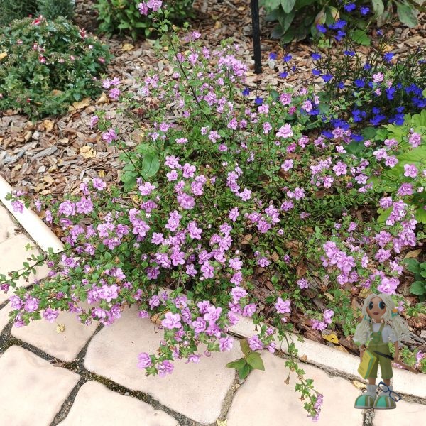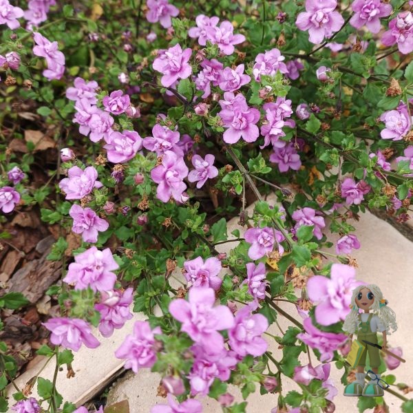 Цветы большие, 2,5 см в диаметре, обычные (не махровые), сиреневые, густо покрывают весь куст. Цветут обильно волнами с начала весны до самых заморозков.
