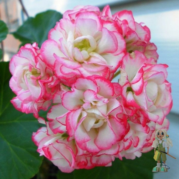 Зональная розоцветная пеларгония Sutarves Klara San была селекционирована шведским питомником в 2016 году. Это потрясающе красивое растение, которое обладает пышными махровыми цветками высокой декоративности. Из-за малого числа лепестков бутоны полностью не раскрываются, что придает им изысканности и делает очень похожими на небольшие, до 3 см. в диаметре, розочки. Лепестки имеют нежно-розовый оттенок, к центру постепенно переходящий в бело-зеленый. По краю лепестков расположена ярко-розовая кайма. Насыщенность окраски цветков зависит от условий содержания – если растение находится на хорошо освещенном подоконнике, цветы становятся более яркими, особенно при выращивании в тепле. Прохлада и недостаток света позволяют получить менее интенсивную расцветку в бледном варианте. Цветки собраны в пышные соцветия.