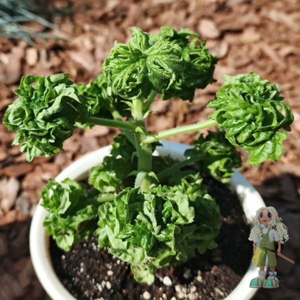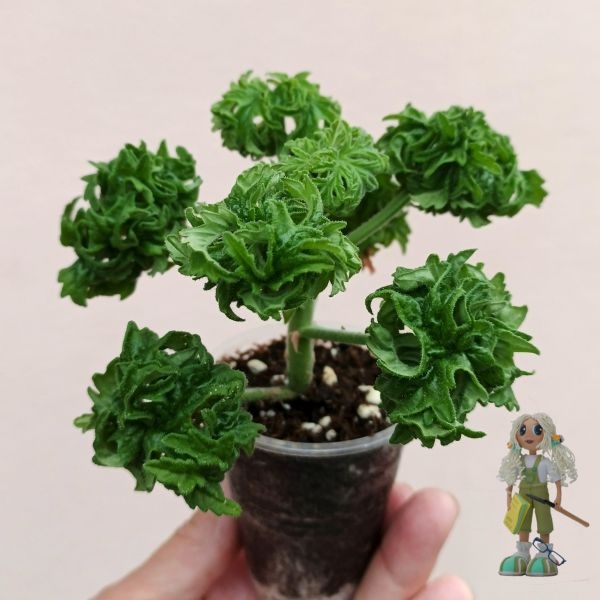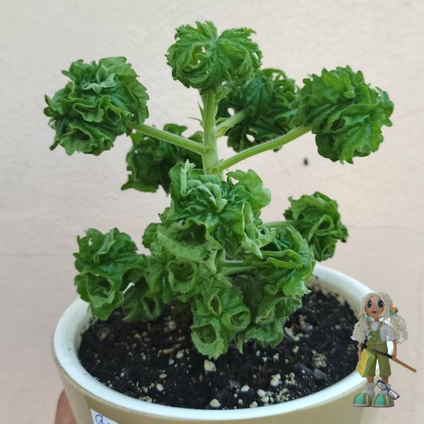 Graveolens Bontrosai – совершенно изумительный сорт душистой пеларгонии с очень компактной формой куста и необыкновенными листьями: они рассечённые, сильнодеформированные и скрученные в аккуратные округлые шарики, которые обладают выраженным лимонным ароматом, с добавлением ноток мелиссы и зелёного чая.
