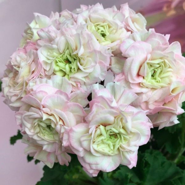 ЮВ-Северная Андромеда – гибридная пеларгония с очень крупными густомахровые цветками, лепестки которых могут укладываться многочисленными стопками. Необыкновенно красивая окраска цветков также является огромным достоинством сорта: летом их серединка розовая, осенью же розовый нейтрализуется в переливы от зеленых до пастельных оттенков, которые делают цветок еще более изысканным. Цветение очень обильное и продолжительное.