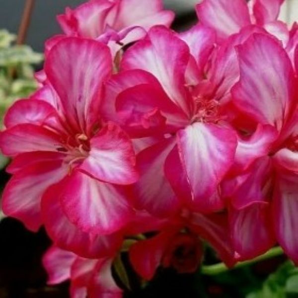Пеларгония Harlequin Alpine Glow — это эффектный и необычный сорт плющелистной пеларгонии с уникальной окраской цветов. Основной цвет — розово-сиреневый, по середине каждого лепестка проходит белая полоса, а края имеют темно-розовую или малиновую окантовку. Цветы крупные, махровые, собраны в пышные соцветия.