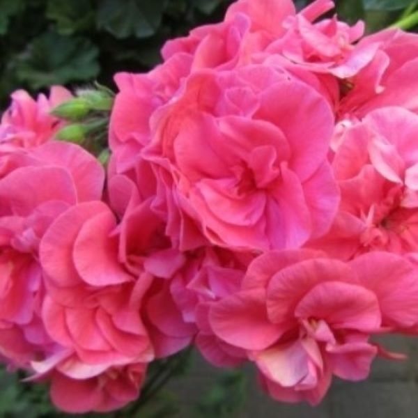 Pac Vicky – очень красивый компактный сорт плющелистной пеларгонии с огромными шапками ярких крупных кораллово-розовых цветов. Цветки махровые, напоминают нежные розочки, что придаёт сорту особую привлекательность. Цветение очень обильное и продолжительное.