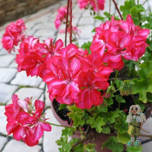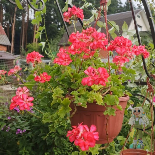 Toscana Okka – один из самых красивых сортов плющелистной (ампельной) пеларгонии. Ни у одного другого сорта нет такой действительно оранжевой окраски цветов: она может быть ярче или тусклее, уходить в розовый, но всё равно остаётся пронзительно рыжей, особенно на солнце.