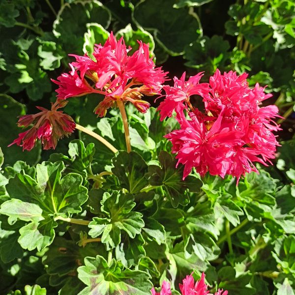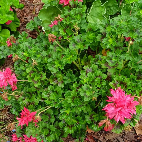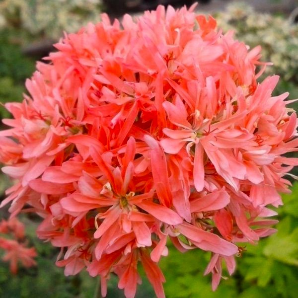 Пеларгония Bronze Butterfly — очень интересная звездчатая пеларгония (стеллар) с крупными, махровыми и полумахровыми цветами звездчатой формы яркого кораллово-красного или персикового оттенка. Цветы собраны в крупные соцветия и их одновременно образуется очень много, благодаря чему куст всегда выглядит нарядно!!! Цветение обильное и очень продолжительное.