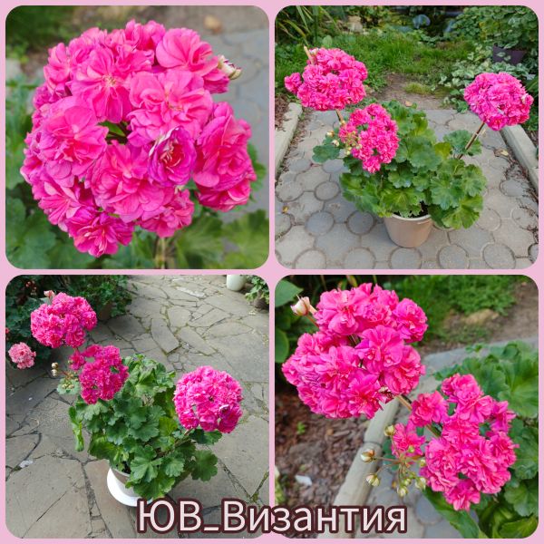 ЮВ-Византия – необыкновенно яркая гибридная пеларгония с густомахровыми цветочками красного оттенка, переходящего в пурпурный к краю лепестков. Шапки соцветий очень крупные и многочисленные, цветёт охотно, обильно и продолжительно!!!