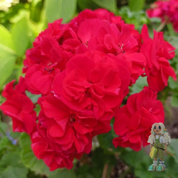 Цветочки с бархатистыми лепестками темно-красного оттенка собраны в крупные, плотные соцветия. Цветение довольно продолжительное, яркое и обильное,