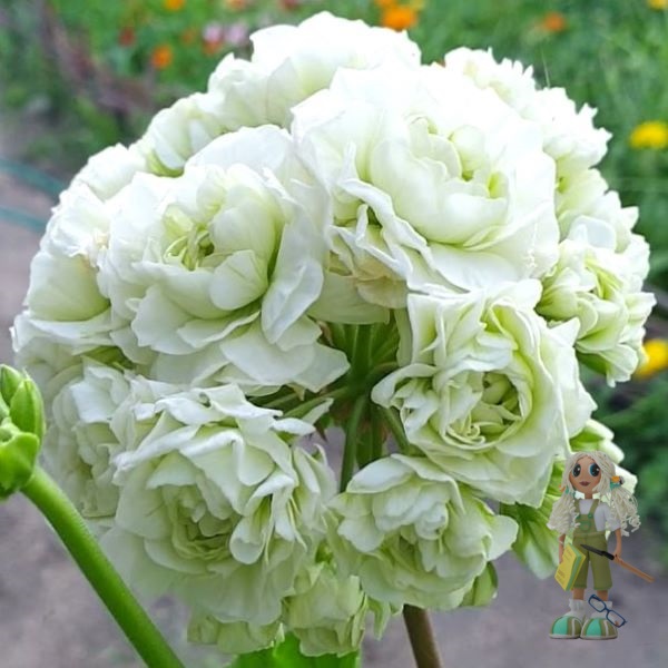 Midori Buke – розебудная пеларгония японской селекции с фантастически красивыми цветами – это белоснежные пышные розочки с нежным зеленоватым отблеском, которые смотрятся очень эффектно и выразительно.