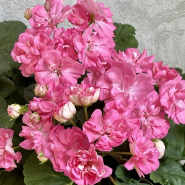 МиОл Моника – очень красивая пеларгония с крупными соцветиями густомахровых цветков нежного розового оттенка и белой изнанкой лепестков.