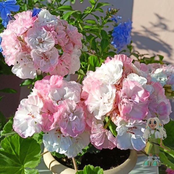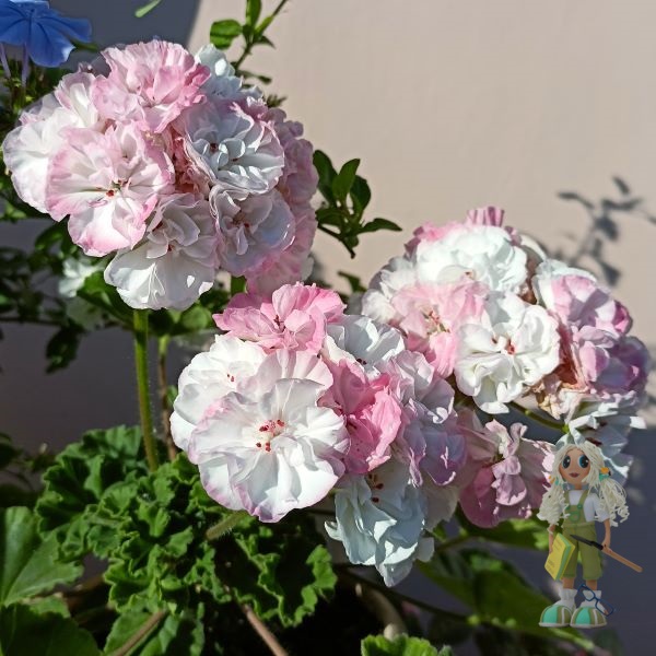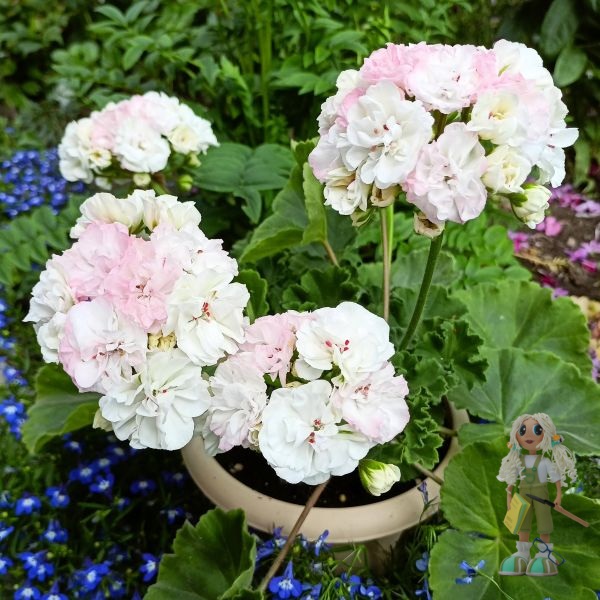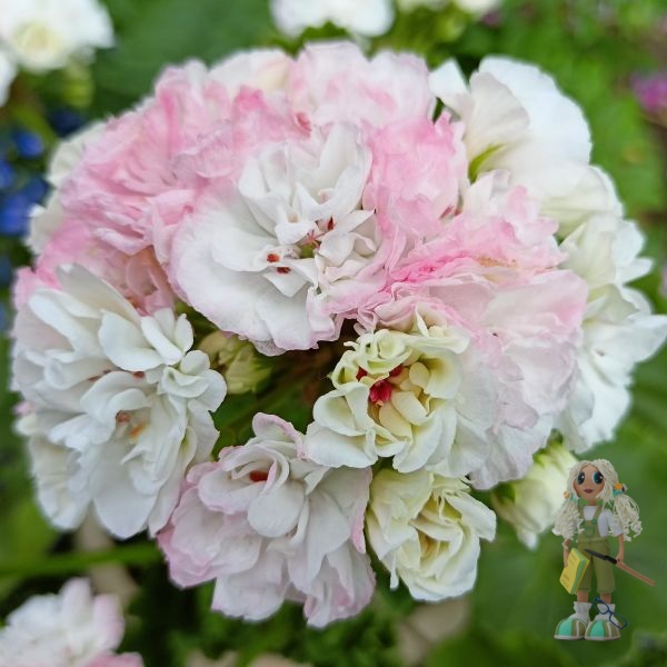 ОЧ Madpearl White – зональная карликовая пеларгония Российской селекции с очень нежными бело-розовыми махровыми цветочками, собранными в огромные шапки ажурных соцветий на толстых невысоких цветоносах. Цветение обильное и продолжительное.