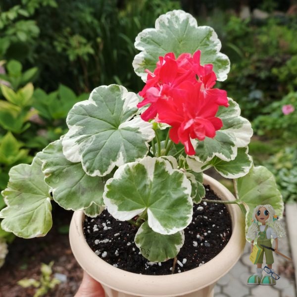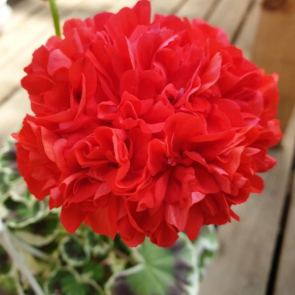 Oliver welfare — очень красивый сорт зональной пеларгонии с красными, яркими, махровыми, фактурными, очень крупными цветами на фоне контрастных вариегатных листьев – они насыщенно зеленого оттенка с темной зоной и широкой белой окантовкой!!!