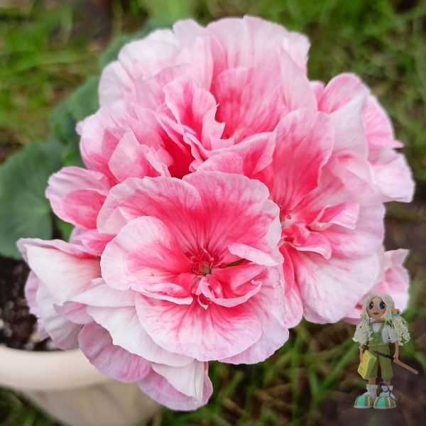 Pac Salmon Queen — компактная зональная пеларгония, привлекающая взгляды нежными цветками с белыми лепестками и лососевым центром, собранными в очень крупные плотные шаровидные соцветия. В зависимости от интенсивности освещения и температуры внешней среды, центр цветка может приобретать более розовый или оранжевый оттенок.