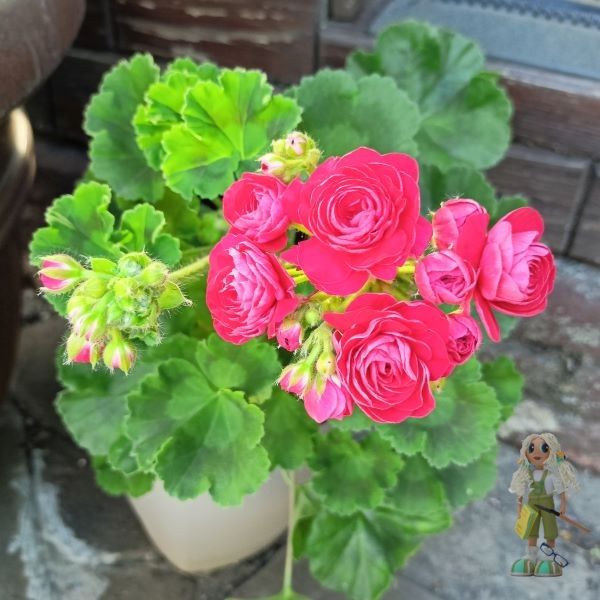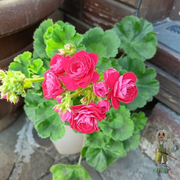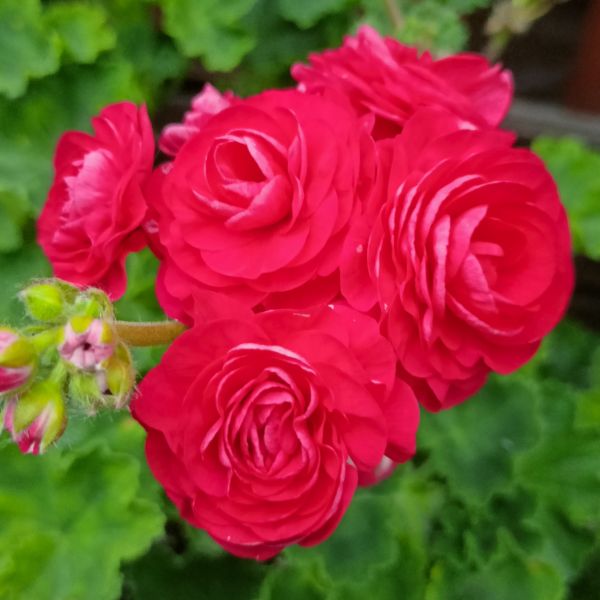 Pac Viva Rosita – необыкновенно красивая зональная розебудная пеларгония шведской селекции, которая стала настоящей гордостью коллекции пеларгоний. Никакого аналога этому сорту пока не нашли: он одновременно имеет крепкий, коренастый куст с хорошим ветвлением, и очень эффектное цветение. Крупные махровые ярко-малиновые цветки до 5 см в диаметре, напоминают розы или ранункулюсы, и держатся на растении около двух недель. После увядания цветы не осыпаются, создавая мусор, а усыхают прямо в соцветии.