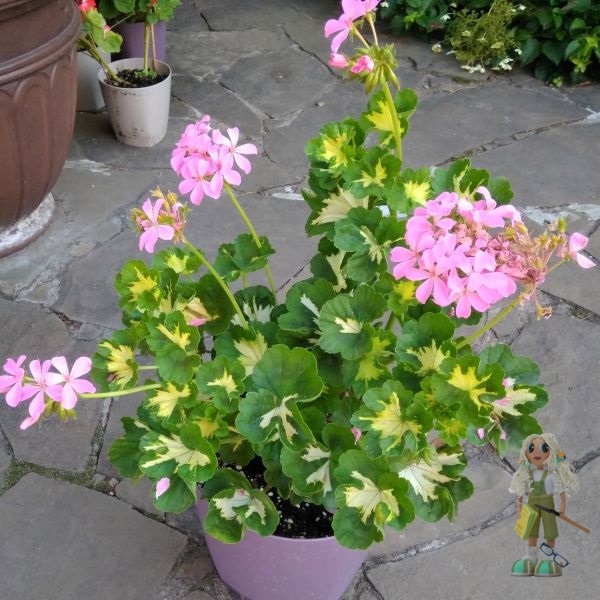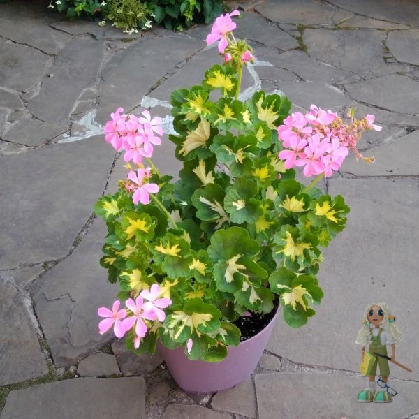 Эта пеларгония всегда привлекает взгляды своими необыкновенными яркими листьями: они слегка гофрированные, сочного зеленного оттенка с ярко выраженным резным желтым пятном в центре.