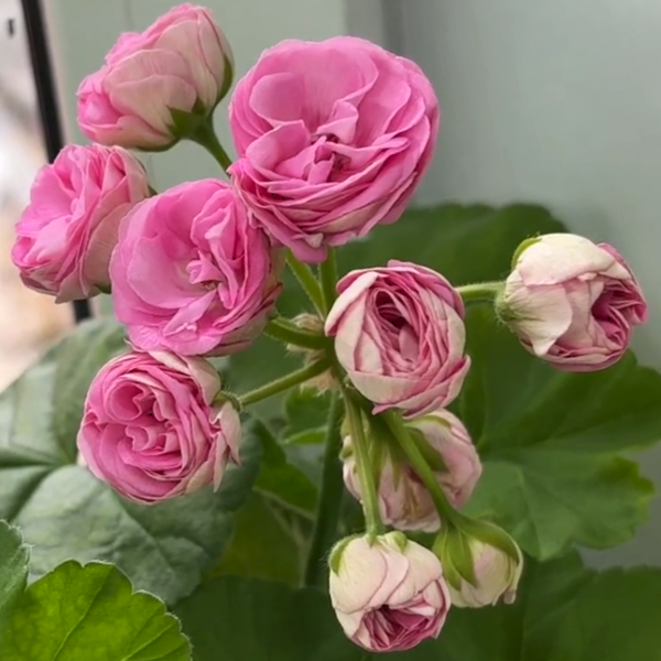СиМ Валенсия — это сорт зональной пеларгонии, который покоряет не броской яркостью, а утонченной грацией своего цветка. В полуроспуске бутоны похожи на изящные розы, затем они вытягиваются в утонченные бокалы, чтобы, наконец, раскрыться в пышные многослойные чаши. Вы сможете наблюдать все стадии цветения одновременно на одном кусте!