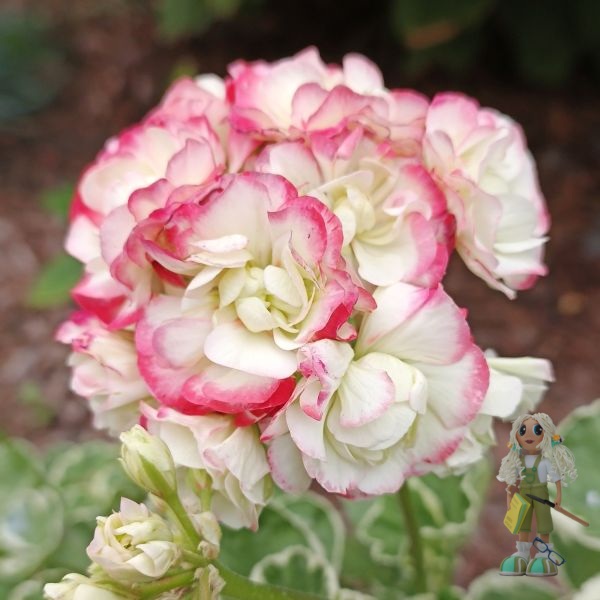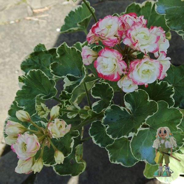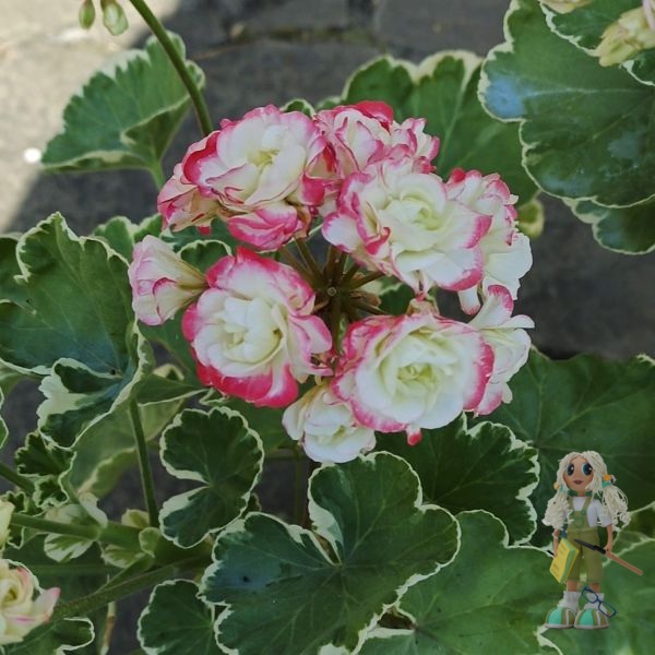 Uaito Ringu – очень необычная зональная розебудная пеларгония японской селекции. Интерес к ней вызван не только нежными, практически белыми с зеленцой цветками, края лепестков которых на солнце приобретают ярко-розовый оттенок. Но и листья этой пеларгонии крайне декоративны: они не слишком крупные, темно-зеленого ближе к изумрудному цвета, с легкой белоснежной пудровой каймой по краю.