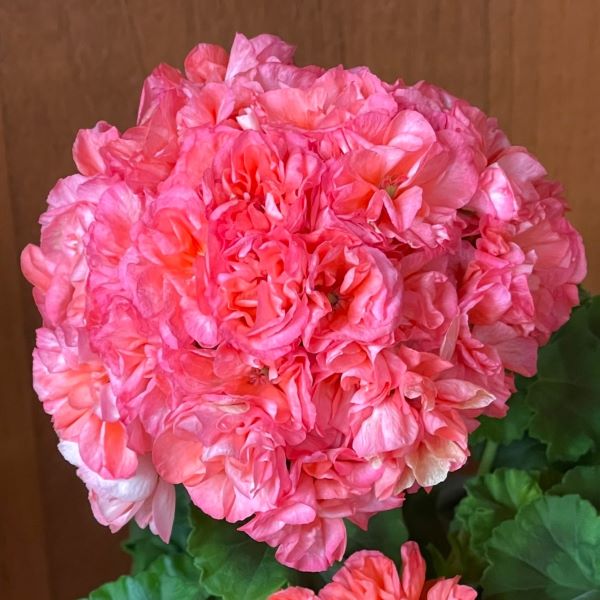 ВК-Елена – прекрасный сорт зональной пеларгонии, который обладает коренастым кустом стандартного размера и крупными, очень привлекательными соцветиями яркого лососево-розового оттенка. Цветоносы прочные, короткие и толстые, хорошо держат плотные шапки соцветий.