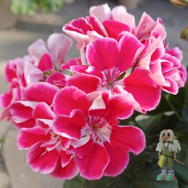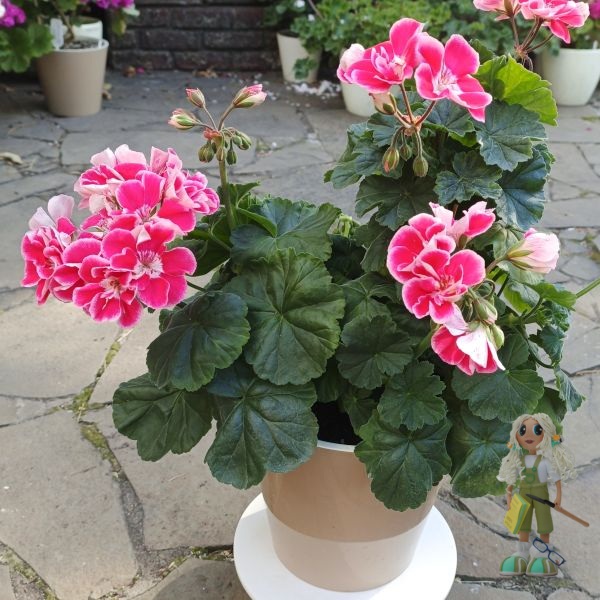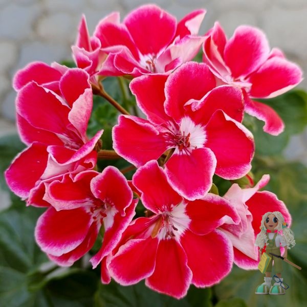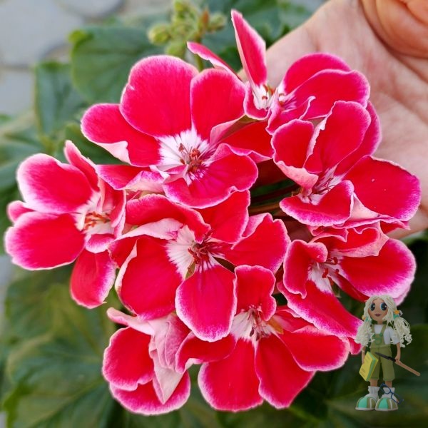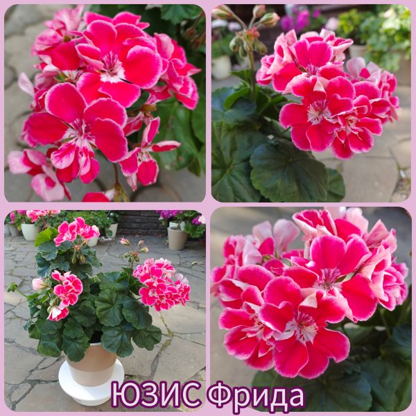 ЮЗИС-Фрида – удивительной красоты зональная пеларгония!!! Необыкновенно яркая, с крупными контрастными цветами: лепестки окрашены в винно- красный оттенок с белоснежной каймой по краю, а серединка– светлая, будто подсвечивается изнутри – выглядит очень нарядно!!!. Цветение обильное и продолжительное, цветоносы короткие, хорошо держат крупные и плотные шапки соцветий, цветки долго не осыпаются..