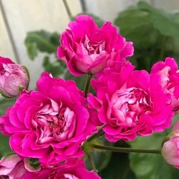 Идеально сформированный, компактный кустик, прекрасно ветвится и создает пышную крону, украшенную крупными, густомахровыми бутонами, которые словно полураспустившиеся розы горят ярко-розовым цветом. Изнанка каждого лепестка — светлая, отчего весь цветок кажется сияющим и невероятно объемным. Зацветает практически с черенка, не заставляя вас долго ждать.