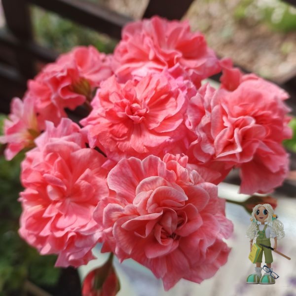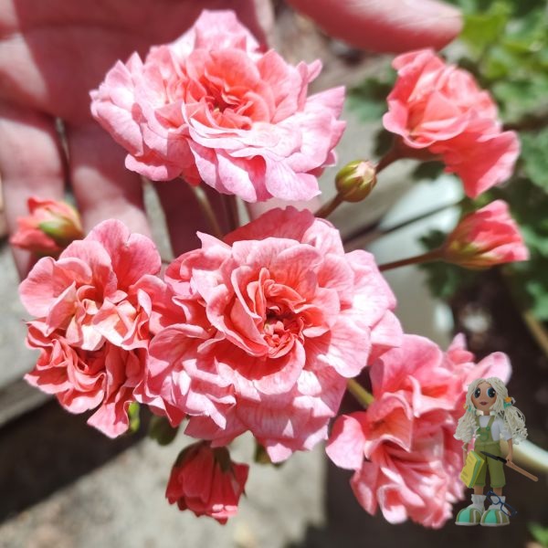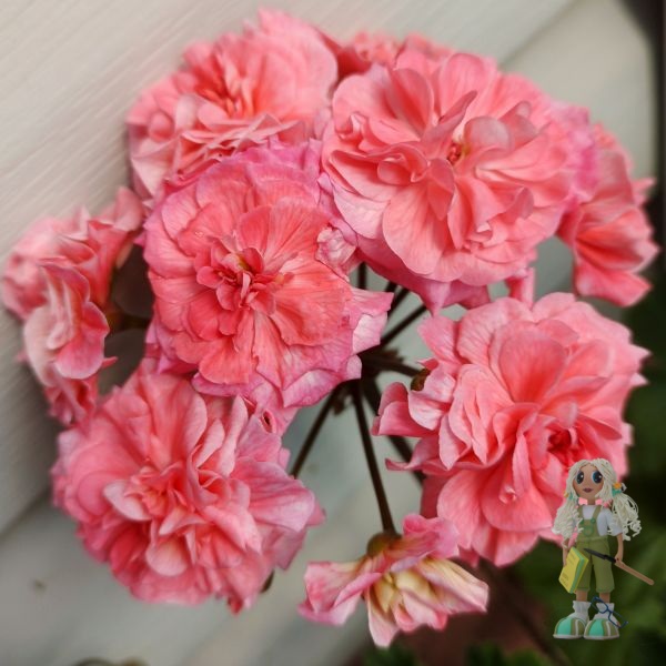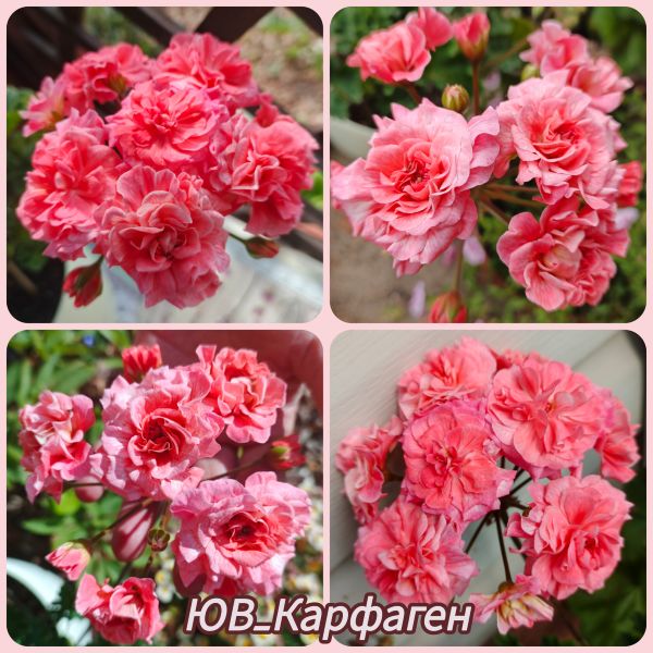 Пеларгония ЮВ-Карфаген – гибридный зонартик, который выделяется своими крупными махровыми цветами лососевого оттенка. Причем каждый цветок многослойный и имеет прожилки на лепестках. Цветоносы прочные, образуются в большом количестве.